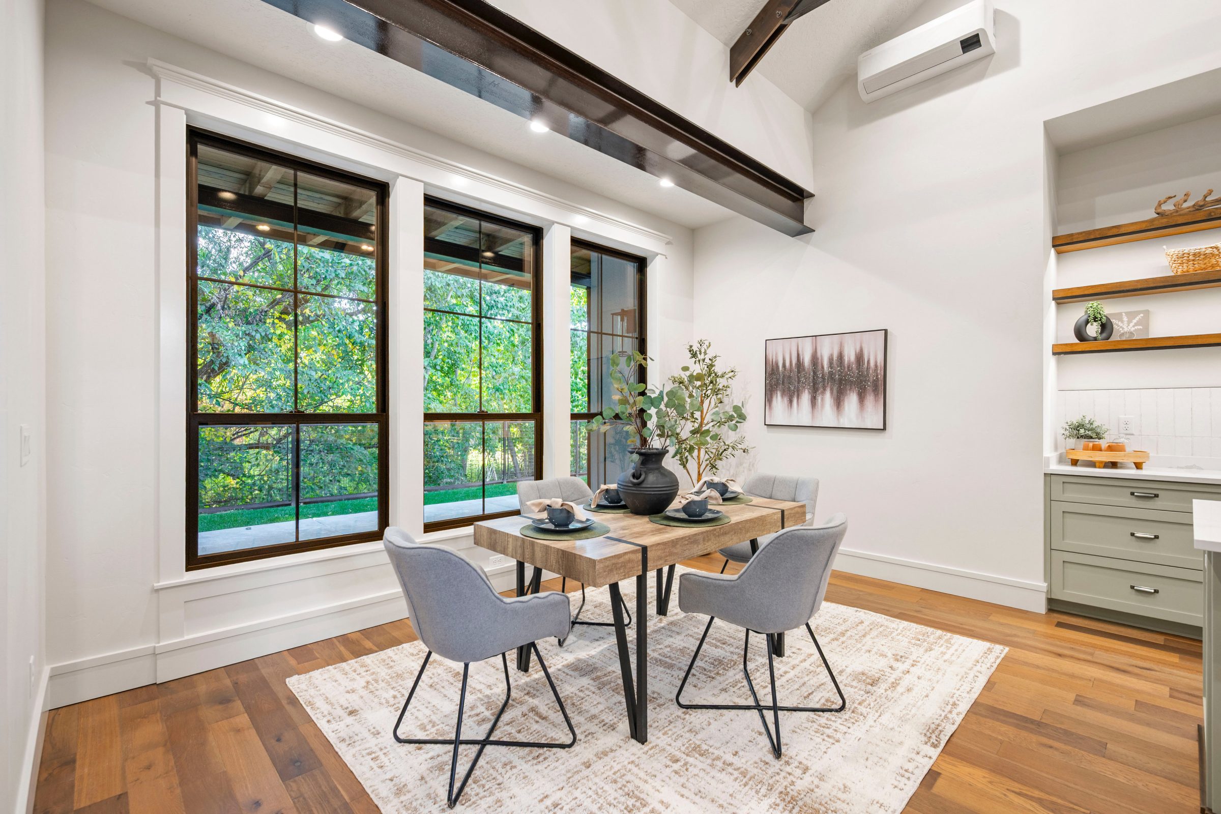 Located in the coveted Stillwater community along the Boise River, this custom RSI-built industrial farmhouse balances bold design with refined comfort. Offering just under 2,400 sq ft of modern living, the single-level layout features 3 spacious bedrooms and 2 full baths, thoughtfully designed to blend function with luxury. Conveniently situated just off Highway 44, Stillwater offers quick access for commuting and is only minutes from downtown Eagle—yet the setting remains private and quiet, with a backyard that enjoys complete privacy, no back neighbors, and a serene outdoor retreat.